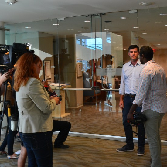 Bashir doing his first-ever media scrum, after meeting with Mayor Don Iveson.