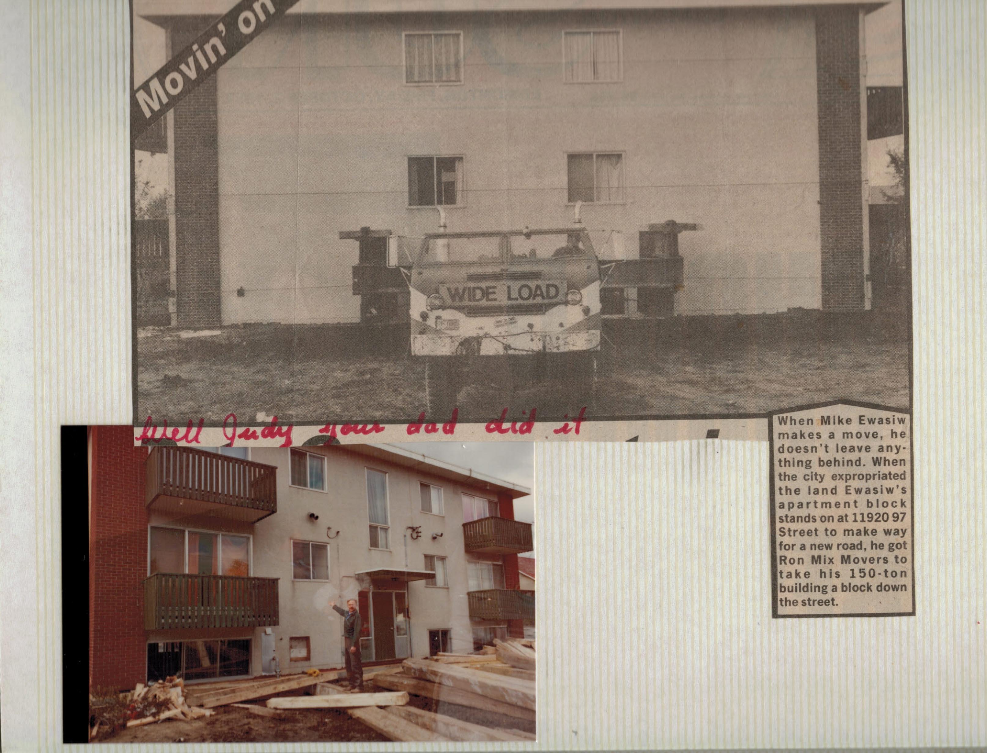 This episode: The Great Apartment Caper. Pamela Learmond asks me to help her verify whether her grandpa Mike Ewasiw really had an entire apartment building moved down 97 Street.
