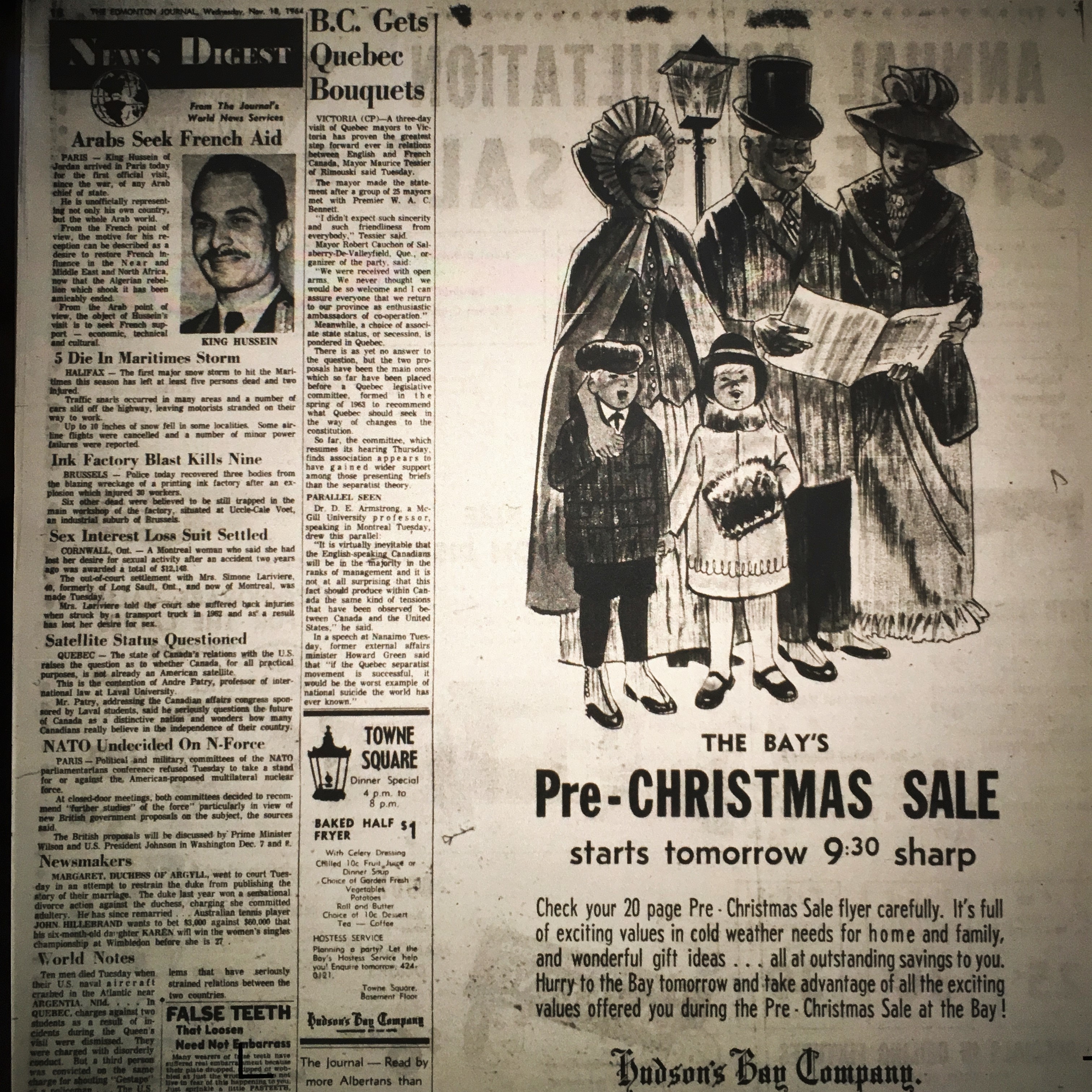 An ad for the Bay’s Pre-Christmas Sale in the Edmonton Journal on November 18, 1952.