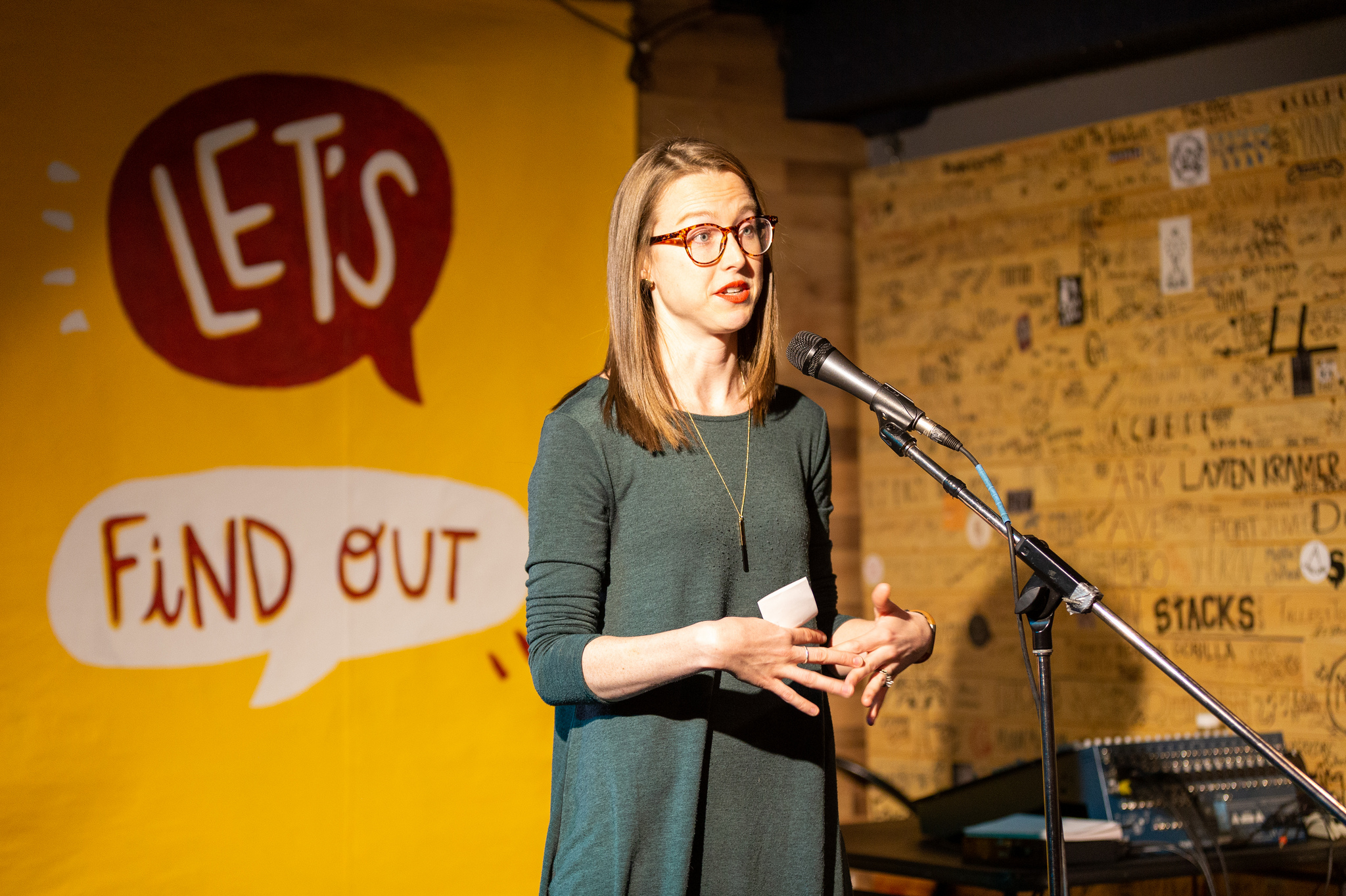 This year, we’re embarking on a new season of Let’s Find Out, exploring these ideas. We kicked things off with a live show at The Almanac this February. It featured short talks about humans and natural history in the Edmonton area, and games for audience members to play. At the end of the event, participants submitted questions to our story garden for this season of Let’s Find Out.