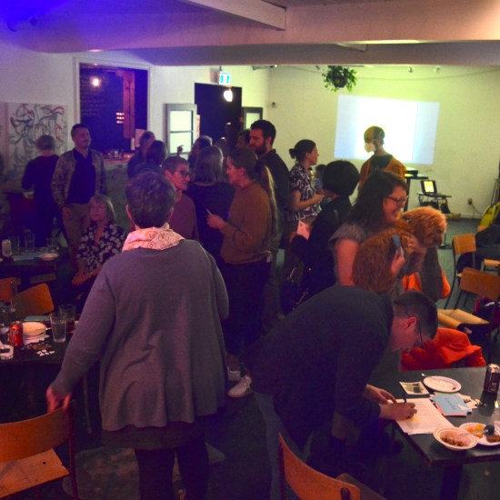 As guests came in, they had a chance to grab a card with the name of a park or natural area in Edmonton, and to exchange stories about their place.