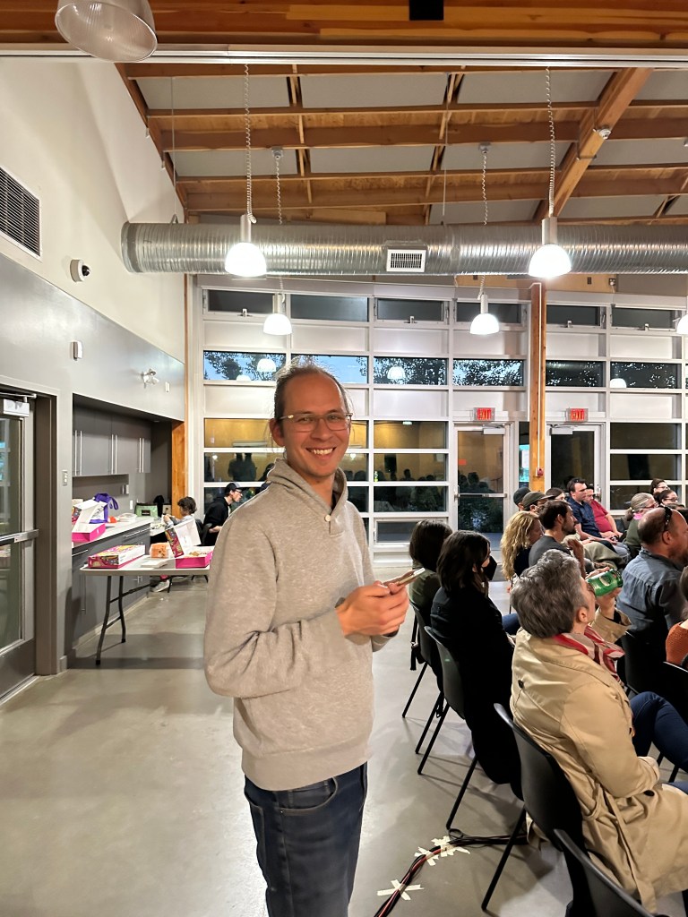 Chris welcomes the crowd to the evening. [Photo: Denise Chang-Yen]