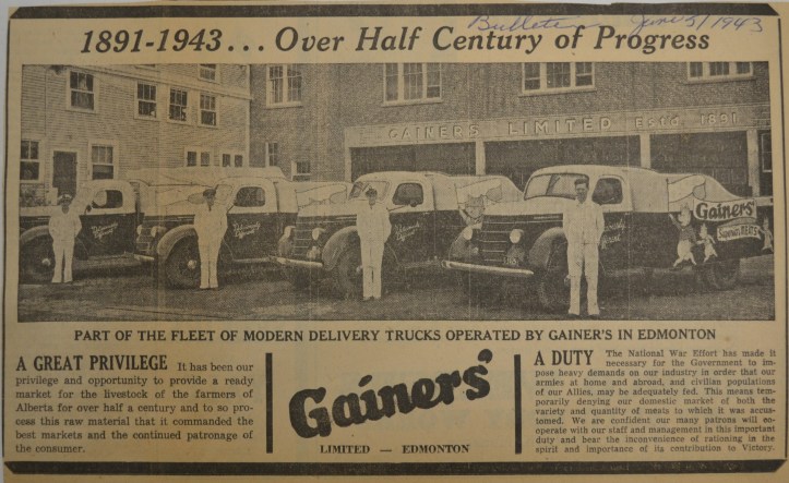 June 26, 2017June 26, 2017Chris Chang-Yen Phillips Over a Half Century of Progress Gainers’ advertisement from the Edmonton Bulletin in 1943.